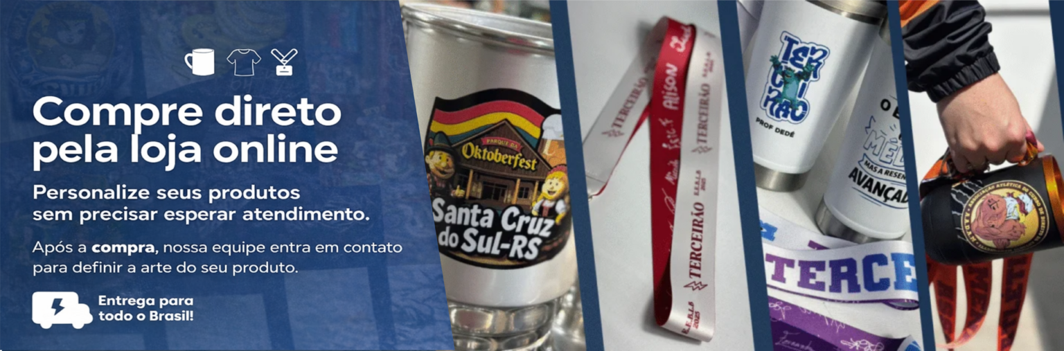 Caneca Alumínio 500ml R$ 18,90 Fita Cetim Personalizada 25mm R$ 8,90 Fita Cetim Personalizada 40mm R$ 9,90 Kit Caneca 400ml + Fita Personalizada R$ 23,90 Kit Canecas 850ml + Fita Personalizada R$ 25,90 Kit Canecas 750ml + Fita Personalizada R$ 25,90 Copo Térmico Personalizado R$ 35,90 Kit Canecas 500ml + Fita Personalizada R$ 24,90